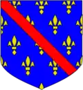 : "de azur sembrado de flores de lis de oro, con un traverso componado de plata y de gules".