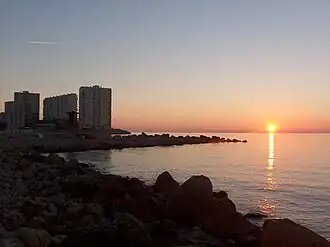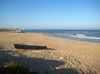 Bordeada por edificios de apartamentos y hoteles, el paseo adornado por palmeras y con una zona de camas elásticas y parque infantil. Cuenta con una escuela de windsurf, así como un punto accesible.