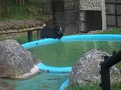 Oso frontino dentro de su estación en el zoológico de Mérida.
