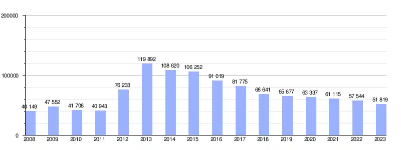 | Gráfica de evolución de la deuda viva del Ayuntamiento entre 2008 y 2023 |