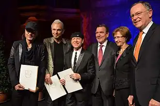 ![]() Klaus Meine, Rudolf Schenker y Matthias Jabs en la ceremonia de los premios de Baja Sajonia |