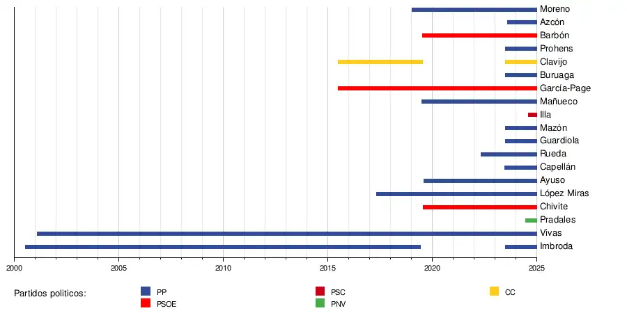 | Autonomía | Presidente | Mandato | Duración | Partido | |