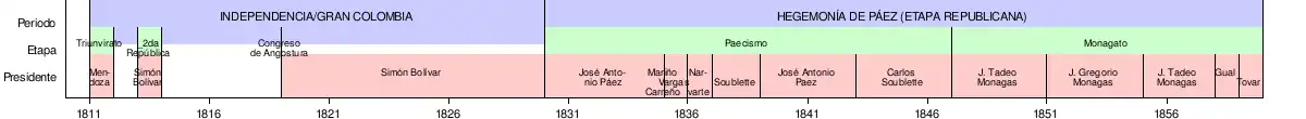- ↑ Fernández, Américo (10 de junio de 2013). «CRONOLOGÍA DE VENEZUELA / Américo Fernández: Separación de Venezuela de la Gran Colombia». CRONOLOGÍA DE VENEZUELA / Américo Fernández. Consultado el 18 de agosto de 2018.