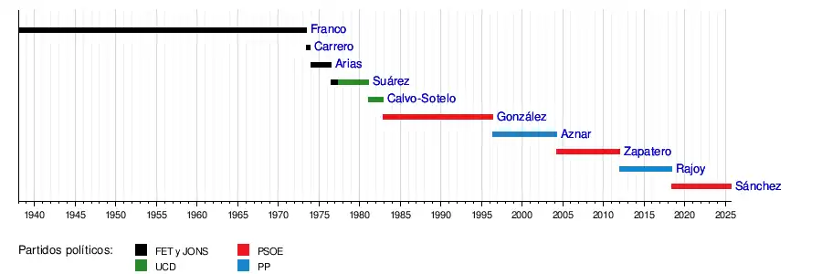 - ↑ Llegó a la presidencia del gobierno tras ganar una moción de censura