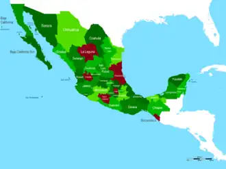 Propuesta de creación de los estados de La Laguna, Huasteca, Colotlán, Valle de México, Tierra Caliente y Soconusco