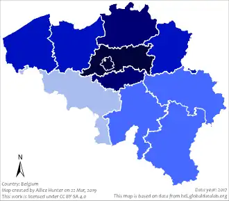 Clasificación de las provincias de Bélgica por índice de desarrollo humano (datos del 2018).[1]