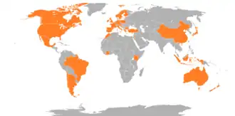 El Campeonato Mundial de Rally ha visitado los cinco continentes con pruebas en 42 países diferentes. En naranja, países que han albergado alguna prueba.