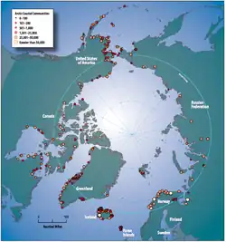 Varias millones de personas viven sobre el círculo polar ártico y muchos millones más viven dentro de la cuenca de drenaje del océano Ártico, pero no dentro del Círculo. Las únicas partes del Ártico que están realmente deshabitadas son los amplios campos helados y las costas más septentrionales de Groenlandia, varias de las islas del archipiélago ártico canadiense y algunas otras islas situadas al norte de Noruega y al norte de Rusia (como Tierra del Norte). La isla Devon, en el norte de Canadá, es la isla deshabitada más grande del mundo.