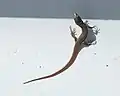 Especie de lagartija que habita las zonas secas de suelo arenoso y escasa vegetación de la península ibérica y el noroeste de África. Llegan a medir hasta 23 cm. La parte inferior de la larga cola posee un color rojo vivo característico. |
