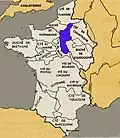 | Aquitania | Neustria | Italia | Borgoña trasjurana | Provenza | Lorena | Sajonia | Suabia (Alamania) |
