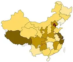 Como diferentes partes de China tienen estándares de vida muy distintos, China no establece un salario mínimo para toda la nación sino que este cambia. En cambio, la tarea de fijar los salarios mínimos se delega a los gobiernos locales[2][3] y los rangos van 1000 yuanes (USD 146) al mes en Guangxi a 2190 (USD 321) en Shanghái.[3][4][5][6][6][7][8] Cada provincia, municipio o región establece su propio salario mínimo de acuerdo con sus propias condiciones.
