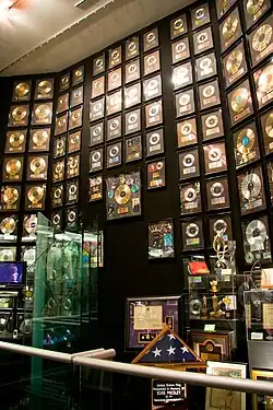 La Recording Industry Association of America —RIAA— le entregó a Elvis Presley su primer Premio de oro en 1958, cuando la RIAA comenzó a seguir sus ventas. En agosto de 1992, fue premiado con ciento diez discos de oro, platino y multiplatino por sus álbumes y sencillos, la mayor presentación de premios de oro y platino en la historia. De acuerdo con los datos de la RIAA en 2011, la organización le certificó a Elvis un total de 90 discos de oro, 52 de platino y 25 discos de multiplatino.[2]