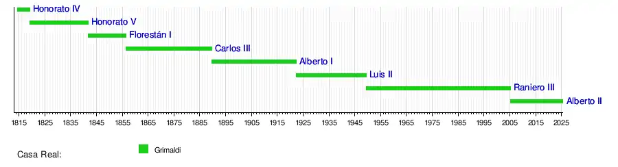 | Honorato V | 13 de mayo de 1778 | 2 de octubre de 1841 | 1819-1841 | Desde marzo de 1815 fue regente de su padre, Honorato IV.