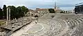 | Teatro de Arlés | Arelate | Arlés | 43°40′35″N 4°37′47″E / 43.67639, 4.62972 | 102 m | Entrada en el proyecto Theatrum | Théâtre gallo-romain d'Arles | Teatro antiguo (Q972128) |