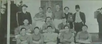 ![]() Arriba: Zenón Díaz, Augusto Winn y J. H. M. Grant; en el medio: Juan Díaz, Daniel Mackenzie y Pedro Wilson; abajo: Francisco Recanzone, Tito Corti, Harry Hayes, Antonio Vázquez, E. Palling. | |||