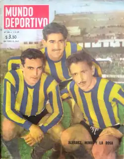![]() Parados: Juan Lombardi, Néstor Cardoso, José Minni, Juan Bertoldi, Carlos Álvarez, Miguel La Rosa; hincados: Alberto Sánchez, Hugo Rivero, Osvaldo Colla, Juan Castro, Ricardo Giménez. | |||
