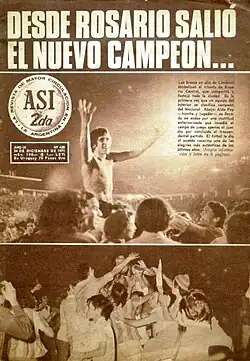 El próximo rival a superar para llegar a la definición del campeonato fue nada menos que el clásico rival, Newell's Old Boys, segundo en el grupo A. El partido se llevó a cabo el día 19 en el Estadio Monumental de Buenos Aires, determinado como terreno neutral y siendo el primer cotejo oficial entre ambos clubes en disputarse fuera de la ciudad de Rosario. El desarrollo del juego fue parejo, con el cuadro canalla logrando hacer prevalecer su juego de marca y anulación de los mejores elementos rivales para luego aprovechar la habilidad de sus jugadores de ofensiva. Así, a los nueve minutos del segundo tiempo consigue llegar al gol a partir de una pelota recuperada por Colman, quien toca para Aimar que a su vez juega el balón hacia el sector derecho del ataque, picando el uruguayo González, quien lanza un centro a media altura para la entrada de Aldo Pedro Poy, que zambulléndose en palomita derrota la valla defendida por Carlos Fenoy, anotando el único tanto del partido. Este gol ha sido tomado como símbolo por los hinchas canallas y celebrado año tras año los días 19 de diciembre.[15] También esta anotación y este partido fueron retratados por Roberto Fontanarrosa en el cuento 19 de diciembre de 1971.[16] Durante el resto del encuentro Newell's buscó el empate, pero Central achicó espacios y reforzó las marcas, impidiendo el mejor juego del rival; las pocas chances con las que éste contó fueron conjuradas por el guardameta Menutti.[17] Los auriazules logran de esta forma eliminar una vez más a sus eternos rivales, esta vez para clasificar a la final del Nacional, buscando revancha de la derrota sufrida en el cotejo decisivo de la edición de 1970 ante Boca Juniors.