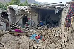 De arriba a abajo, de derecha a izquierda: Una casa destruida en Afganistán por el Terremoto de Afganistán y Pakistán de 2022 • Un edificio derrumbado en Indonesia por el Terremoto de Java Occidental de 2022 • Viviendas derrumbadas en China por el Terremoto de Sichuan de 2022 • Una mezquita en ruinas en Indonesia por el Terremoto de Sumatra de 2022 • Un vehículo dañado por los escombros en Filipinas por el Terremoto de Luzón de 2022. | ||