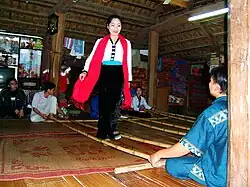 Multa: Max y Katie debían completar una falda tradicional y usarlas mientras ejecutaban un baile ceremonial de seducción.