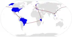 - El lugar en azul subrayado indica aquel equipo que llegó en último lugar en una etapa no eliminatoria.