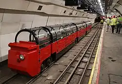 Obstáculo: Un integrante de cada equipo debía montar en tren por el Mail Rail hacia una plataforma de carga. Una vez allí, debía buscar la siguiente pista en un contenedor lleno de paquetes y sobres.