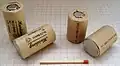 Introdujo 1898 como la primera batería de linterna. Se puede reemplazar con una celda AA o una celda C usando un sabot plástico ( adaptador de tamaño ), con pérdida proporcional de capacidad. |