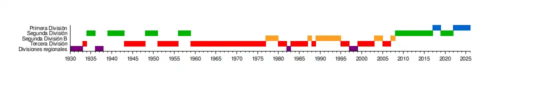 | Temporada | Categoría | Posición | J | G | E | P | GF | GC | Ptos | Copa | Entrenador | Presidente | |||