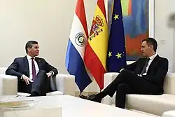 - ↑ «El presidente de Paraguay, Santiago Peña, termina en Zarzuela una gira por España en busca de inversores». elmundo.com.es. 28 de febrero de 2024. Consultado el 20 de mayo de 2024.