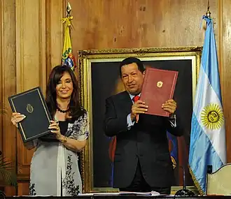 - ↑ «Presidenta argentina visita Venezuela en plena crisis regional». Myplainview. 4 de marzo de 2008. Consultado el 16 de noviembre de 2024.