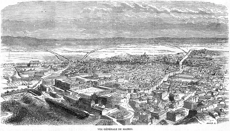 Vista de Madrid publicada en L'Espagne de Charles Davillier.[10] | |