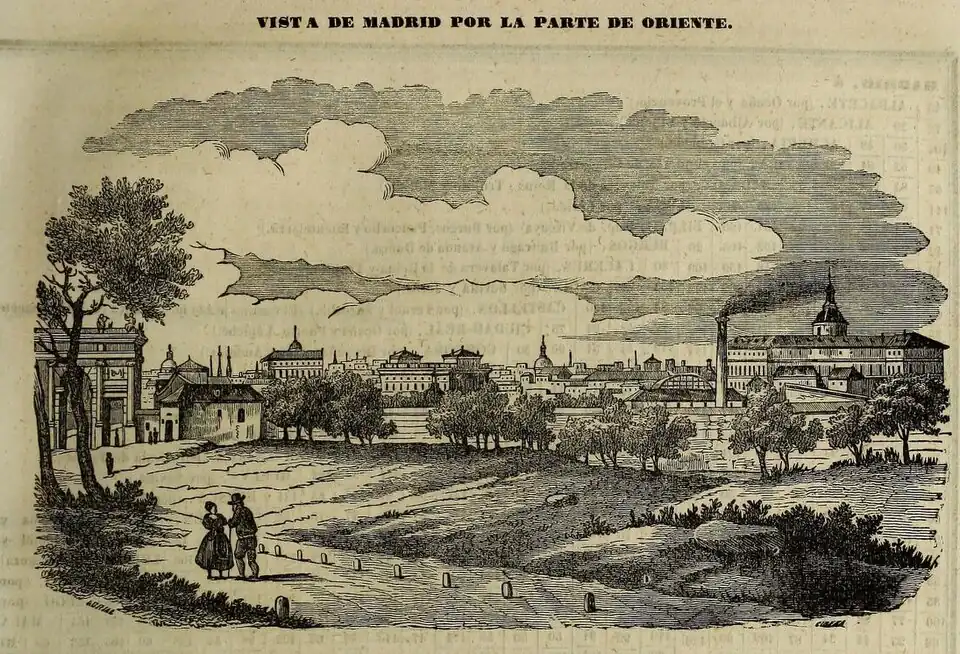 | Vista de Madrid por la parte de Oriente | 1850 | José María Avrial (ilustración) e Ildefonso Cibera (grabado) | Publicada en el Diccionario geográfico-estadístico-histórico de España y sus posesiones de ultramar (1850) de Pascual Madoz. | |