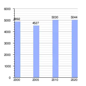 | Gráfica de evolución demográfica de Angamacutiro de la Unión entre 2000 y 2020 |