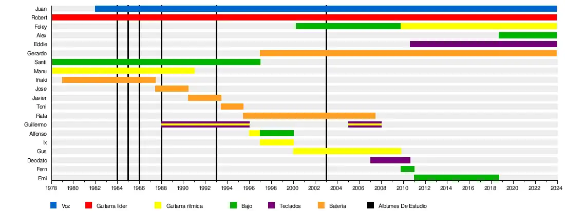 Santi Rubio Manu García Iñaki Munita Javier "Carlucho" o "Cozy" José Sánchez Toni Montalvo Rafa Delgado Guillermo Pascual Alfonso Polo Ix Valieri Gus Santana Deodato "Dio" Montenegro Fern Graver Emi | ||