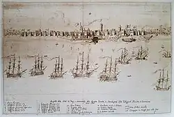 - ↑ Según la nomenclatura veneciana, ya que estos eran los barcos más pesados de la flota veneciana. Según la práctica británica contemporánea, estos barcos se clasificarían como de tercera categoría.