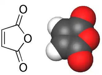 El anhídrido maleico (cis-butenodioico anhídrido, anhídrido toxilic, 2,5-dioxofuran) es un compuesto orgánico de fórmula C2H2(CO)2O. Es el anhídrido de ácido de ácido maleico y en su estado puro es un sólido incoloro o blanco con un olor acre.