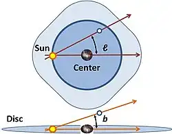 Utilizando la distancia del anillo de Monoceros, se ha afirmado que el diámetro de la Vía Láctea se extiende hasta entre 150.000 y 180.000 años luz. En este paradigma revisado, el sistema solar se encuentra aproximadamente a medio camino entre el núcleo y el borde. [8] Sin embargo, es más común en la literatura astronómica definir los tamaños de las galaxias utilizando otros métodos, en particular mediante la isofota D 25 y las variaciones del radio efectivo. Un estudio anterior realizado en 1998 utilizando la isofota D 25 arrojó un diámetro para la Vía Láctea de 26.8 a 1.1 kilopársecs (87,400 - 3,590 años luz) [9] [10]