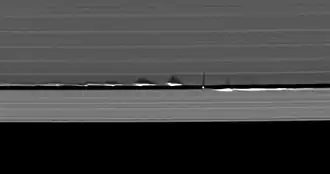 - ↑ Sremčević, Miodrag et al. (2007). «A belt of moonlets in Saturn's A ring». Nature 449 (7165): 1019-1021. Bibcode:2007Natur.449.1019S. PMID 17960236. doi:10.1038/nature06224.