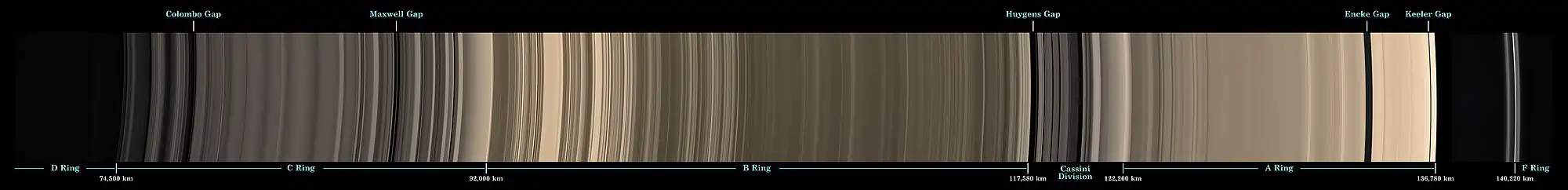 | División de Cassini | 117 500-122 200 | 4700 | Giovanni Cassini |