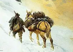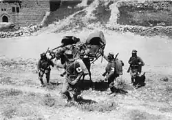 En el frente italiano de los Alpes, el Ejército italiano empleó 3.500 perros, en su mayoría de la raza San Bernardo, para el transporte suministros en trineo.[48]