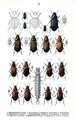- ↑ Akinobu Habu. Carabidae: Harpalini (Insecta: Coleoptera). Keigaku Publishing Company, 1973. p. iii.