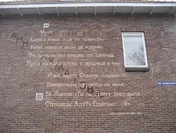 - En San Petersburgo, en el malecón del Nevá, frente a la prisión "Krestý", donde su hijo, marido y muchos amigos estuvieron prisioneros. Ajmátova hizo cola regularmente cerca de "Krestý" con paquetes de comida para ellos durante muchos años. Ella quería que se le dedicara un monumento allí, cerca de "Krestý", si algún día se erigía uno en su memoria.