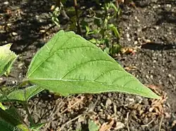 Es una herbácea anual, de 50-110 cm de altura, con tallos decumbentes, lámina foliar de 2-9 cm de largo, las inferiores triangulares; inflorescencia en axilas, flores de 25 mm de diámetro, lóbulos acuminados rojizos, pétalos de 7-30 mm, purpúreos.