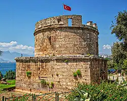 Con el Imperio bizantino, Antalya fue una ciudad importante. Cuando Juan II Comneno se convirtió en emperador, en el año 1118, la ciudad se encontraba aislada del resto del Imperio, solamente accesible por mar.[6]​ Al año siguiente, con la ayuda de su comandante en jefe, Juan Axuch, Juan II expulsó a los turcos de las vías de acceso a Antalya, conectado de nuevo la ciudad con el resto del Imperio.