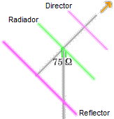 Eléctricamente, el costo de esta directividad es una disminución de la parte resistiva de la impedancia de la antena. Con una misma corriente de alimentación, el campo radiado es más débil. Se compensa este inconveniente remplazando el dipolo alimentado por un dipolo doblado.