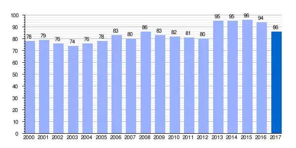| Gráfica de evolución demográfica de Antezana de Foronda[10] entre 2000 y 2017 |