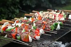La brocheta de carne: es la variante más pequeña; se ensarta en varitas de madera de 15 cm. o menos y en los últimos años su venta se ha popularizado en la vía pública.[cita requerida]