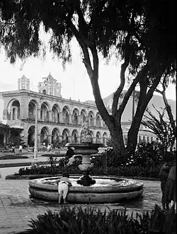 Durante la época virreinal el espacio geográfico era conocido como Santiago de los Caballeros de Guatemala, nombre que llevaba la capital de la Capitanía General de Guatemala, que estuvo asentada allí entre 1541 y 1776, año en que la ciudad fue trasladada al Valle de la Ermita luego de que los terremotos de Santa Marta derrumbaran la ciudad por tercera vez en el mismo siglo.[6]​ Se cree que este hecho fue aprovechado por las autoridades civiles como excusa para debilitar a las autoridades eclesiásticas —siguiendo las recomendaciones de las Reformas Borbónicas emprendidas por la Corona española en la segunda mitad del siglo xviii[7]​ obligando a las órdenes regulares a trasladarse de sus majestuosos conventos destruidos a frágiles estructuras temporales en la nueva ciudad.[8]