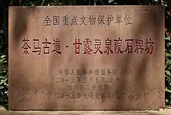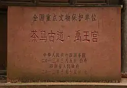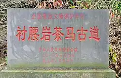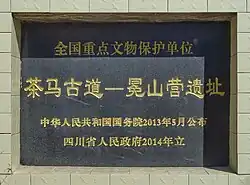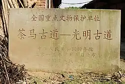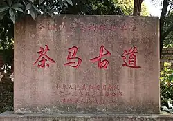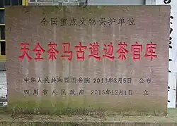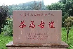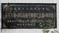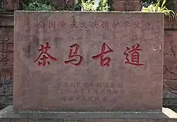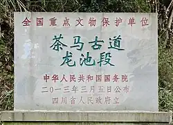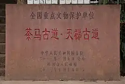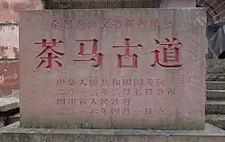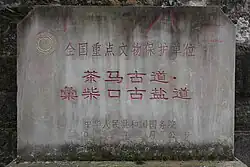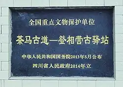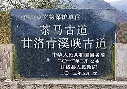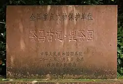 El 5 de marzo de 2013, el Camino Antiguo del Té y el Caballo fue anunciado por el Consejo de Estado de la República Popular China como la séptima tanda de unidades clave de protección de reliquias culturales.[15]