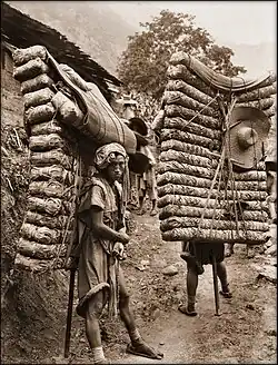 Tanto las personas como los caballos llevaban cargas pesadas. Los porteadores de té a veces cargaban entre 60 y 90 kg, lo que a menudo superaba su propio peso corporal en té.[12][13][14] Los porteadores estaban equipados con bastones con punta de metal, tanto para mantener el equilibrio al caminar como para ayudar a soportar la carga mientras descansaban, para no tener que dejar los fardos en el suelo (como se ilustra en la foto).
