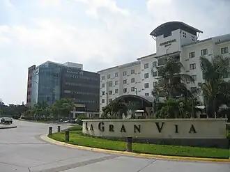 Hotel Courtyard by Marriott en centro estilo de vida La Gran Vía, al fondo sede de Banco Promérica